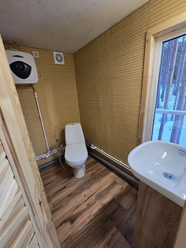 Санузел без душевой. За дополнительную плату можно забронировать баню с чаном от 2-х часов.