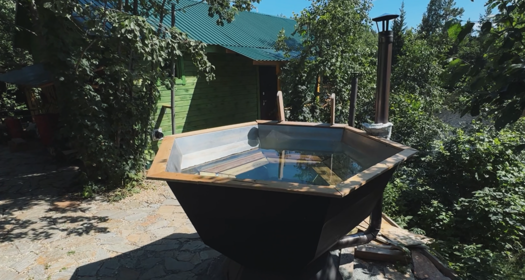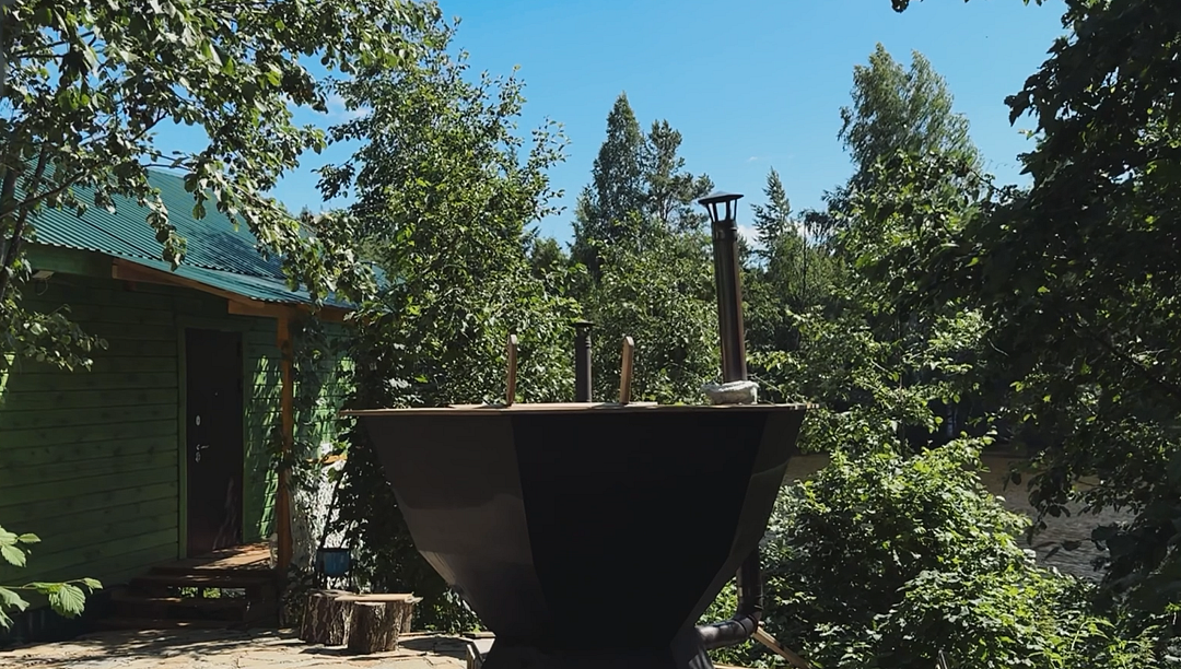 Дополнительно оплачивается топка чана — 5000 ₽/летом, 7000 ₽/зимой. Вместимость чана до 5 человек одновременно.