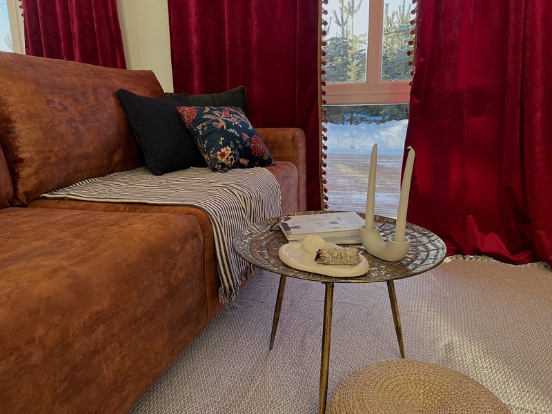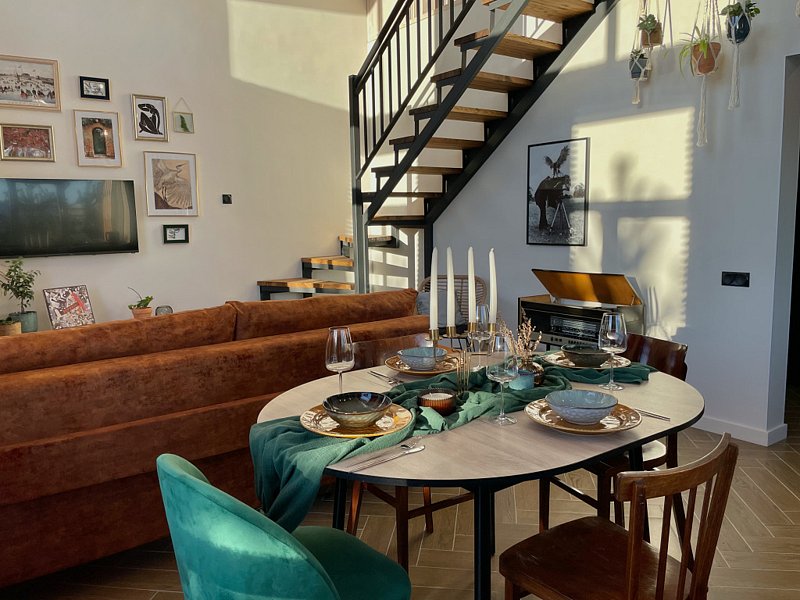 Дом рассчитан на компанию до 6 гостей, с двумя отдельными спальнями и дополнительными спальными местами на диване в зале.