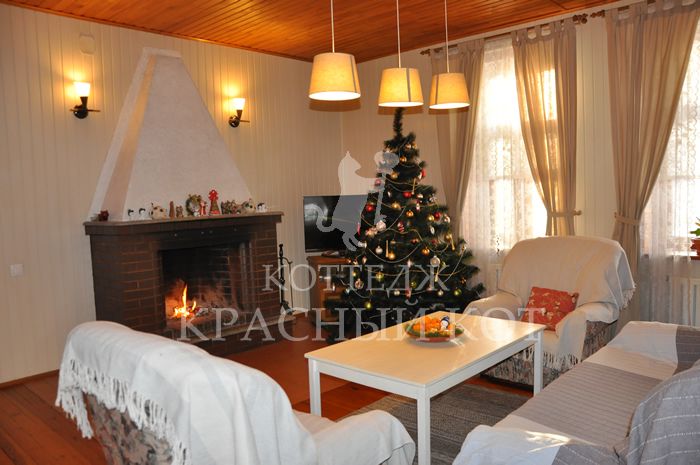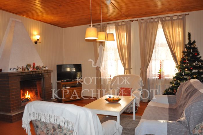 В коттедже есть камин, сауна, 3 мебелированные спальни, кухня, сауна, гостиная.