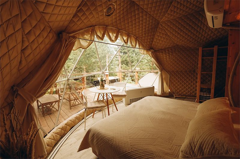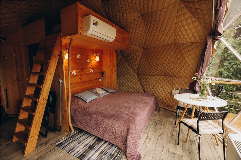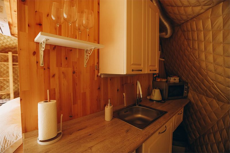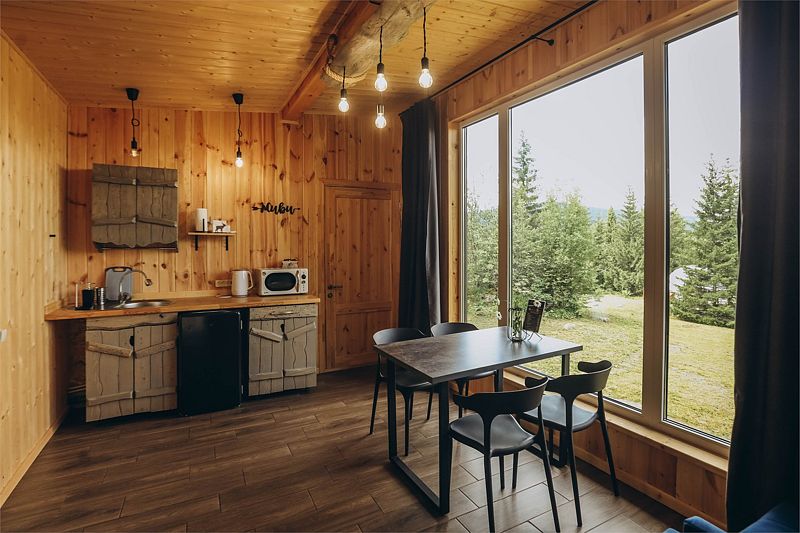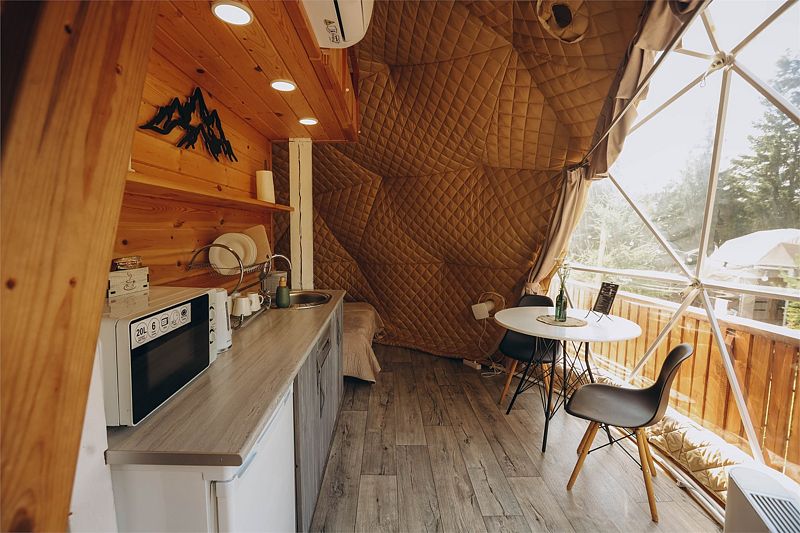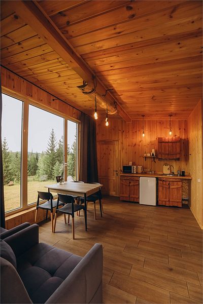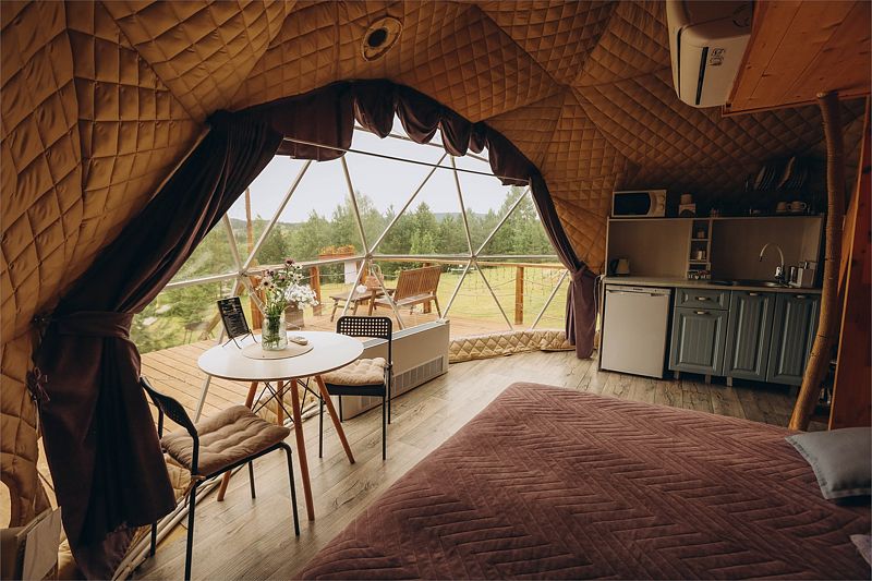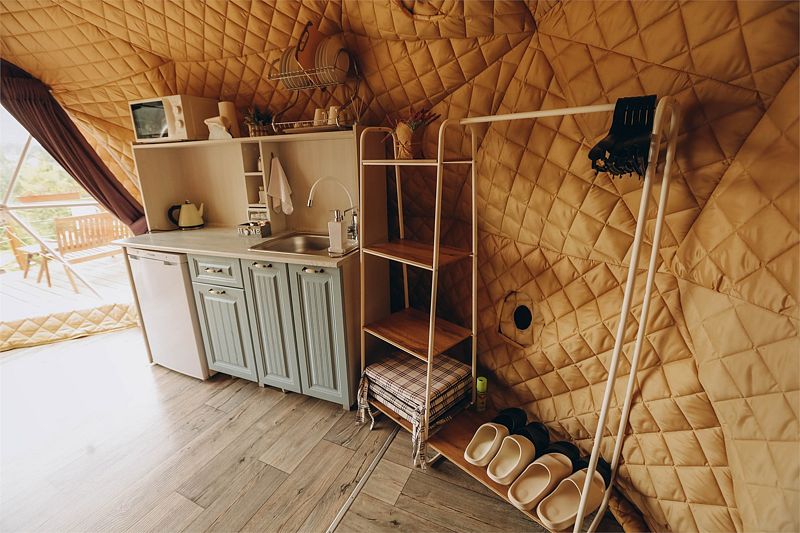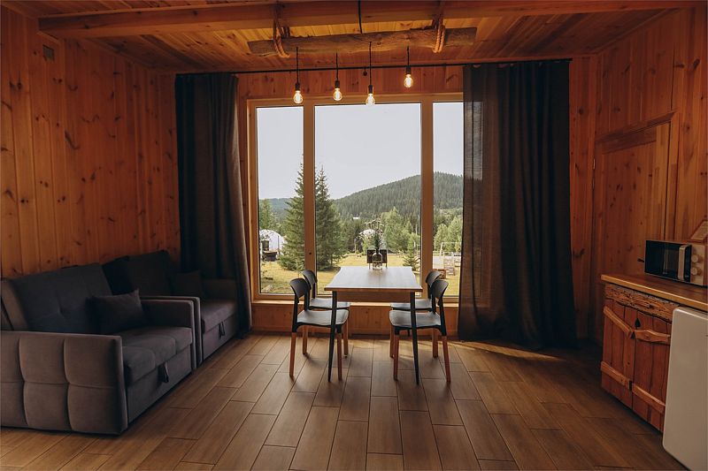 Глэмпинг задумывался как место тишины, где можно отдохнуть в гармонии с природой: насладиться чистым воздухом, светом звёзд, возвышающимися горами, лесом и пением птиц. Дома же хорошо отоплены, с уютом обставлены и оборудованы всем необходимым для комфортного проживания.