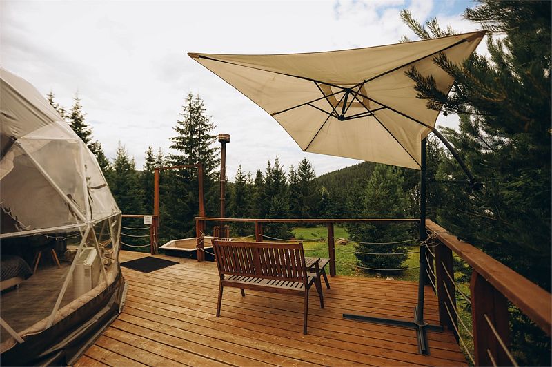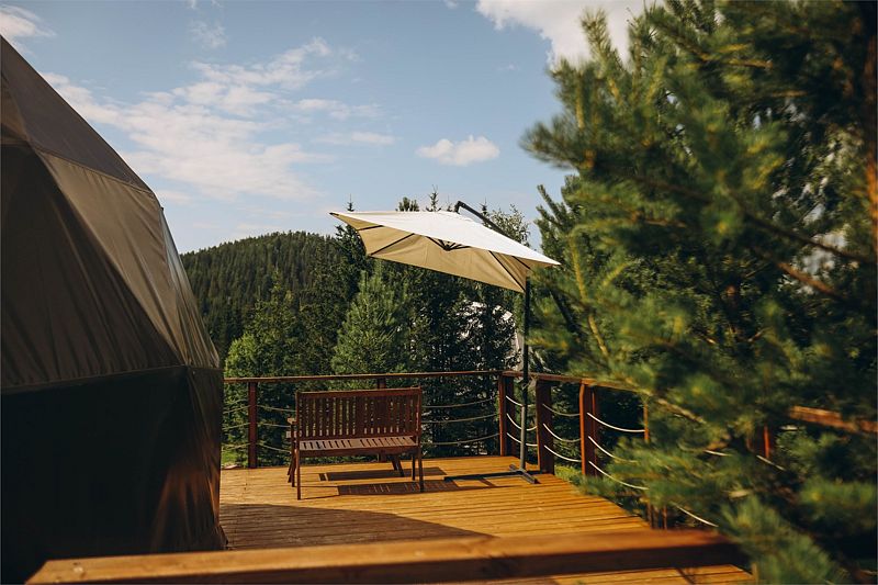 Шатер с видом на лес и горы, с собственным чаном на террасе.