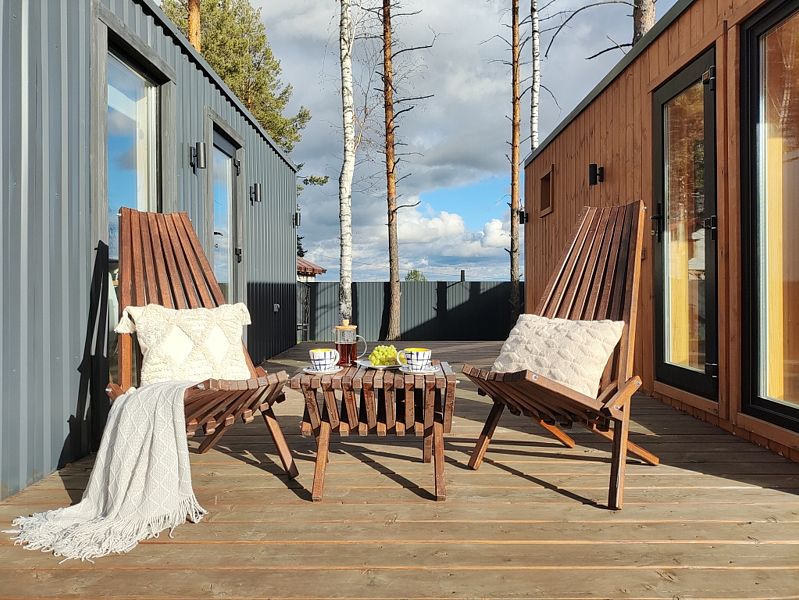 - деревянная терраса с креслами-шезлонгами