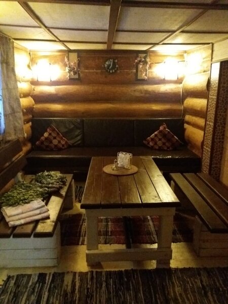 - Веранда с мебелью, большая комната отдыха, баня, купель с ледяной водой.