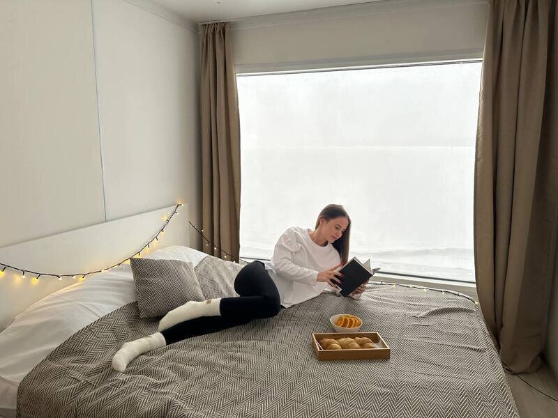 Двухместный коттедж с панорамным видом двуспальная кровать