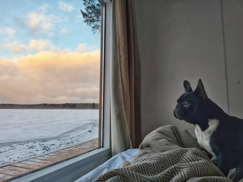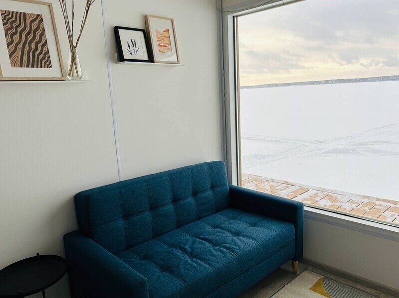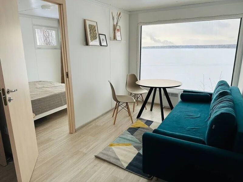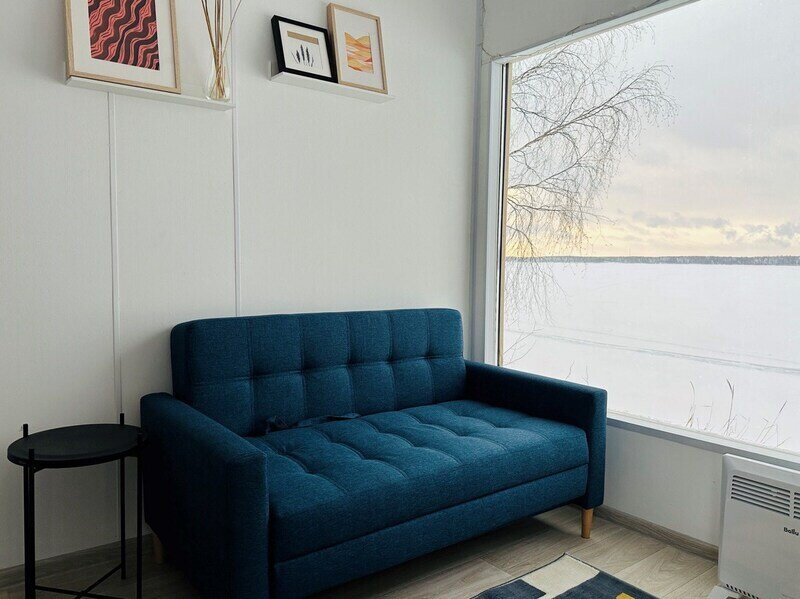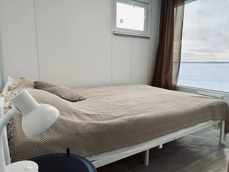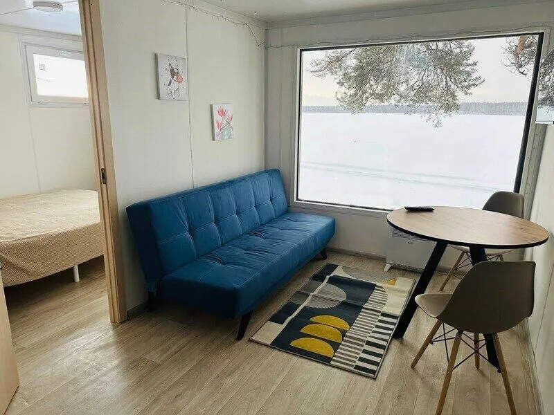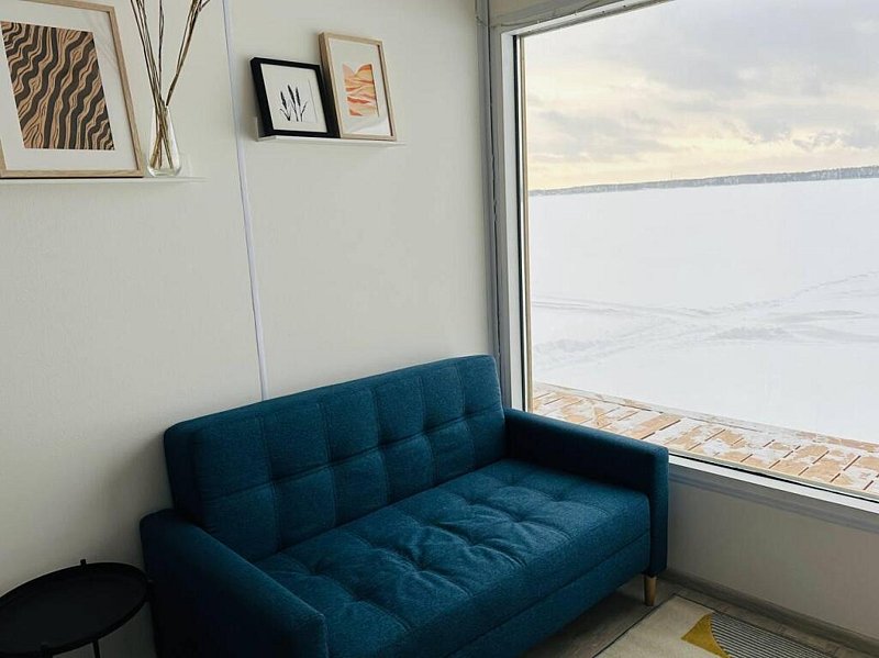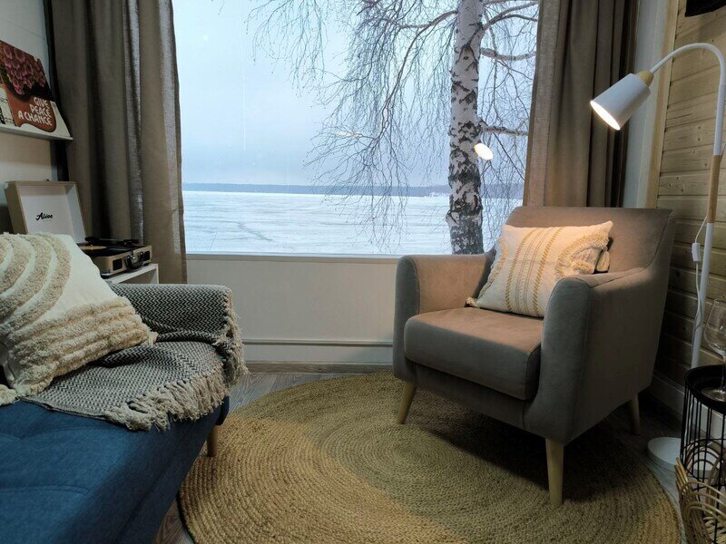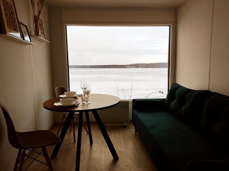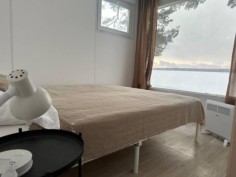 Домик с террасой, мангалом и панорамными окнами с видом на озеро рассчитан на 2-4 человека