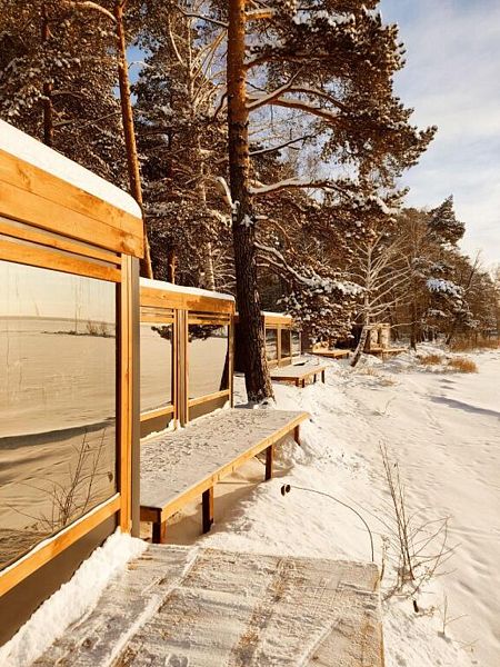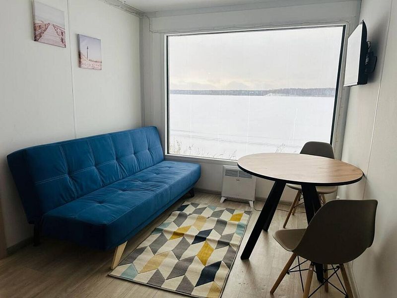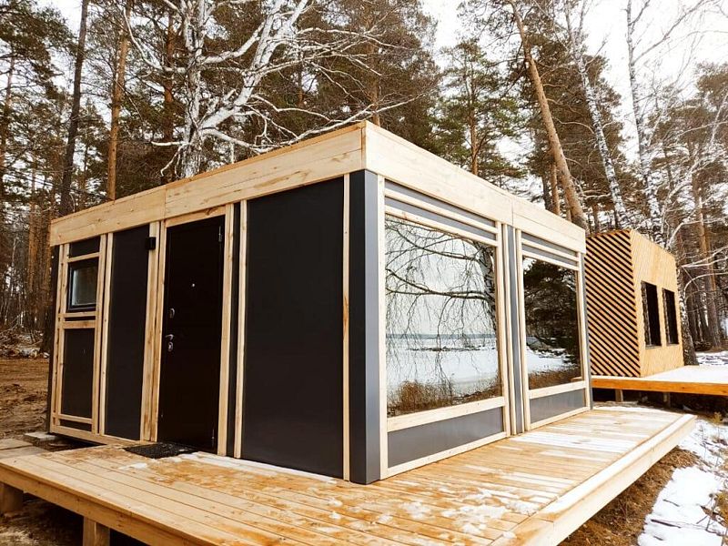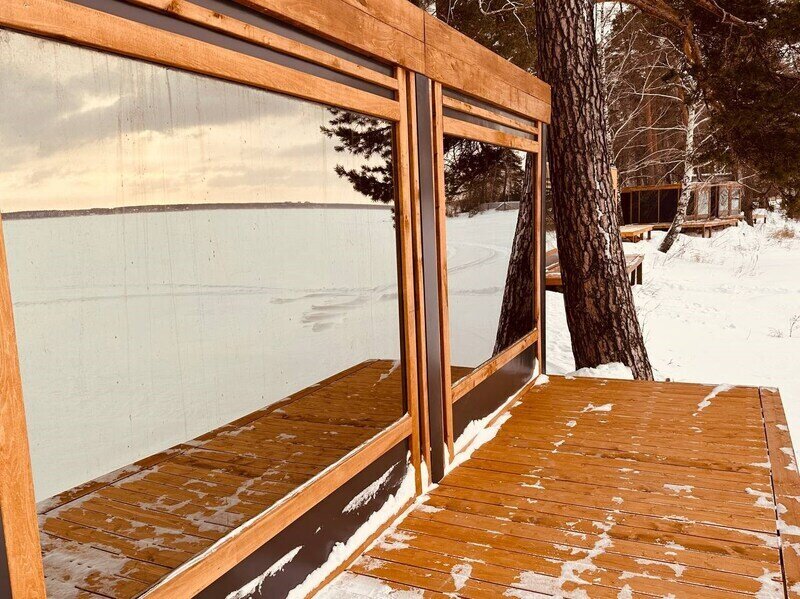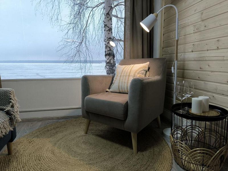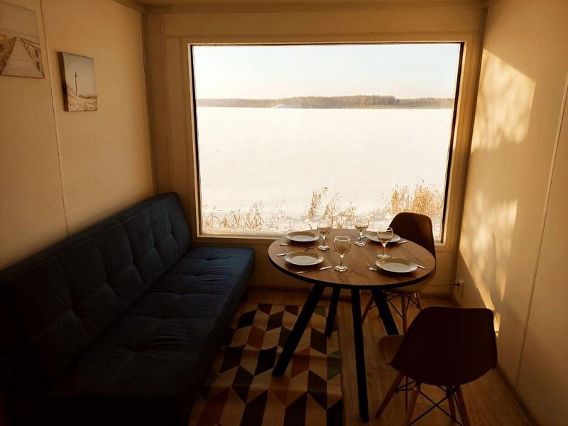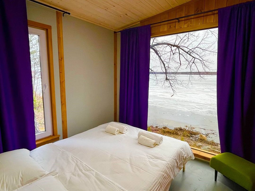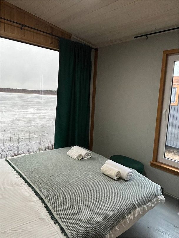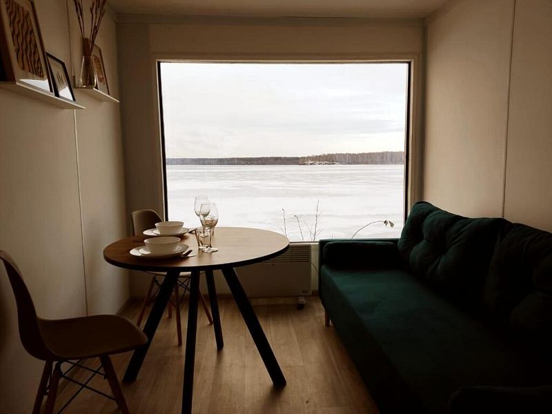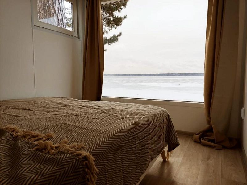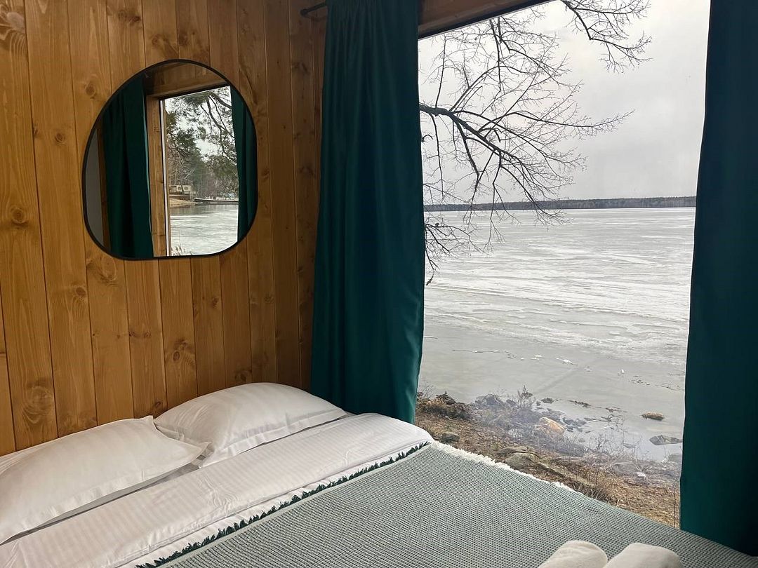 Домик с террасой, мангалом и панорамными окнами с видом на озеро рассчитан на 2-4 человека.