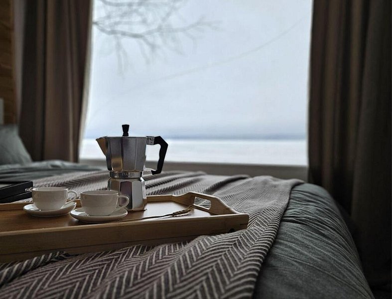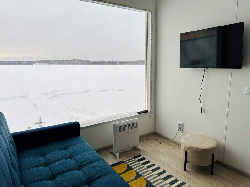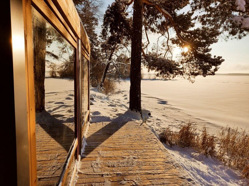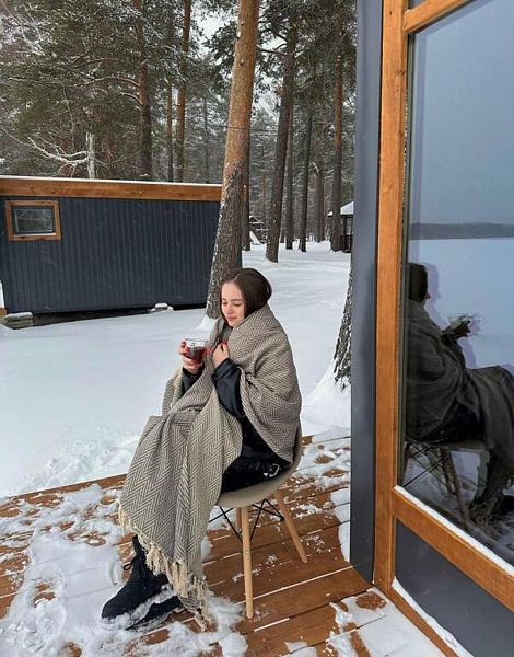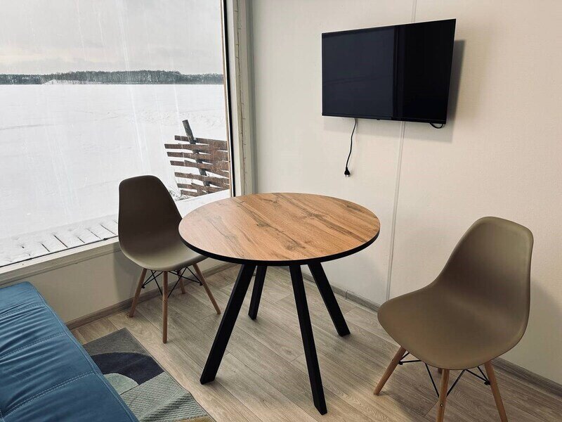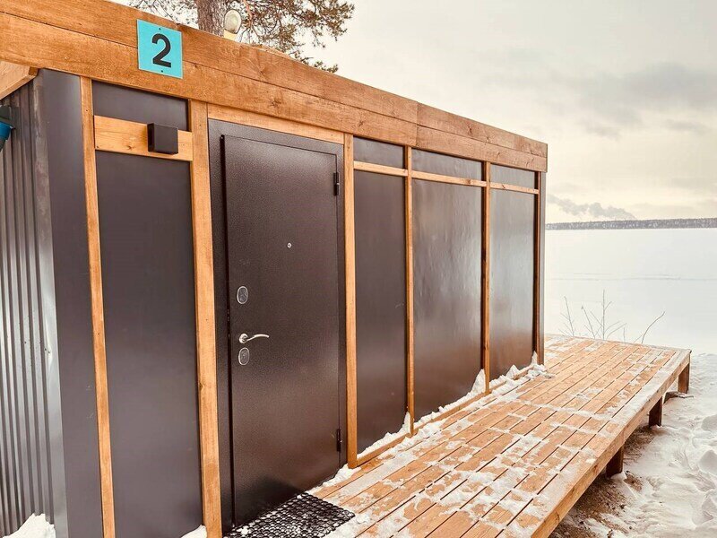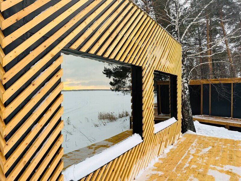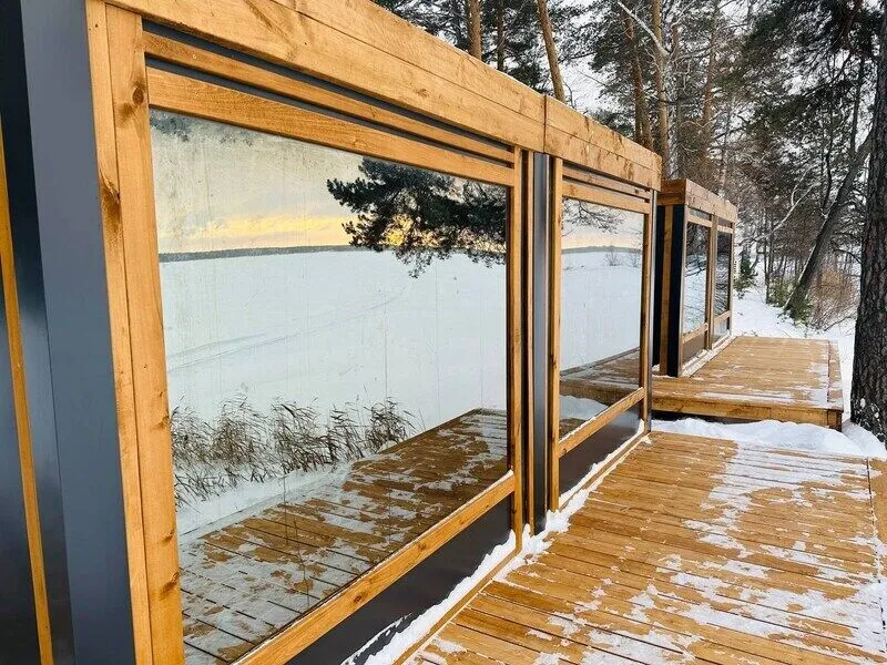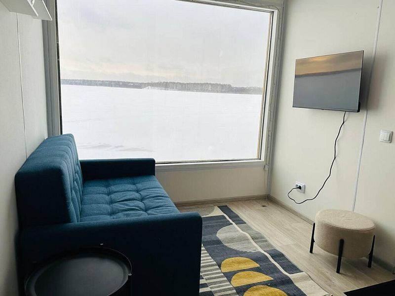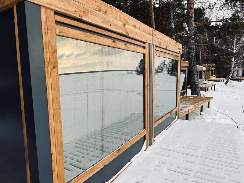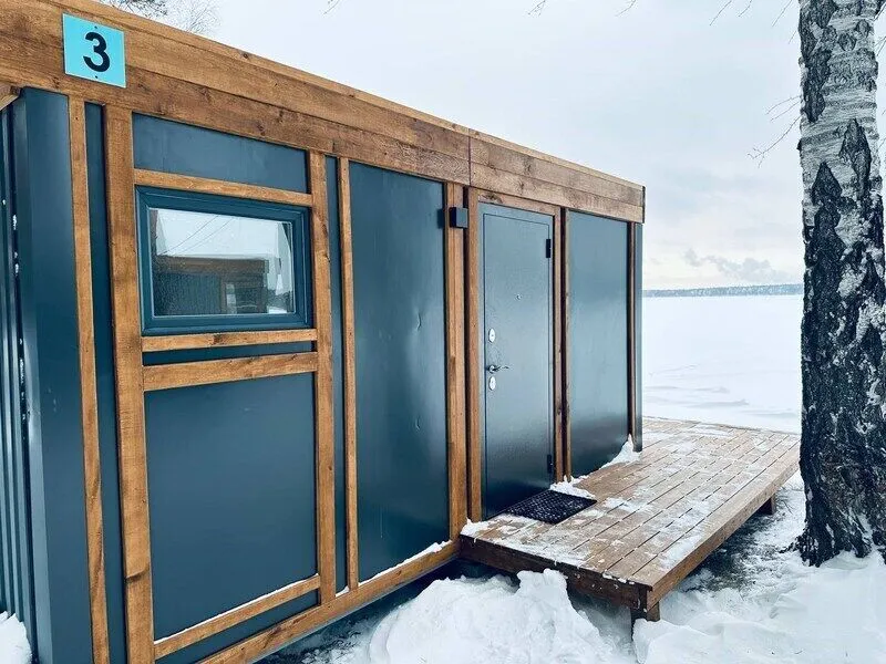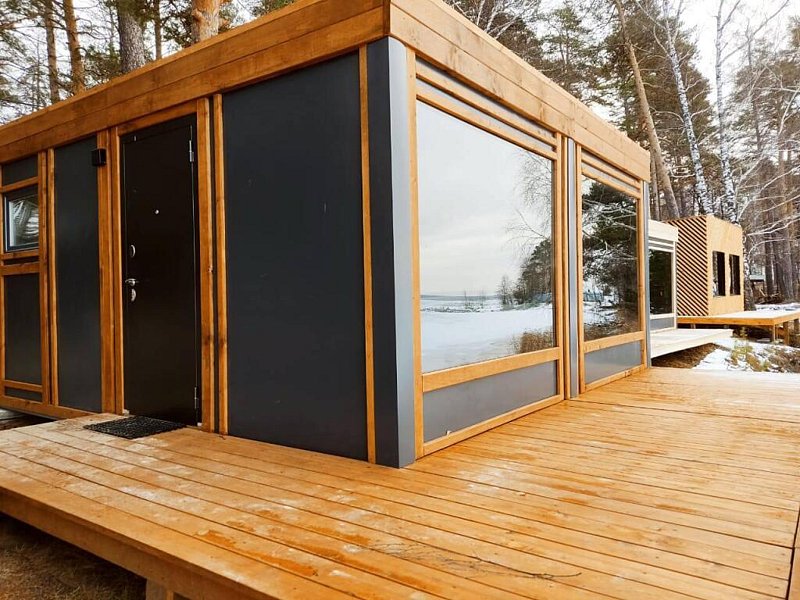 Домик с террасой, мангалом и панорамными окнами с видом на озеро рассчитан на 2-4 человека.