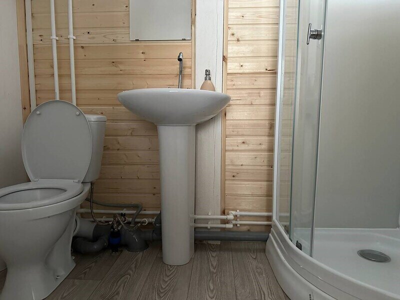 НедостаткиСнимали самый большой домик с баней. Написано вип баня, из випа только надпись на входе. В бане ногам холодно, есть купель, но она не работала. Чан не работал., Плитку, часть постельного белья пришлось просить идти. Если баня не топиться в доме прохладно. В туалет ходить только через место где мыться.