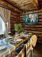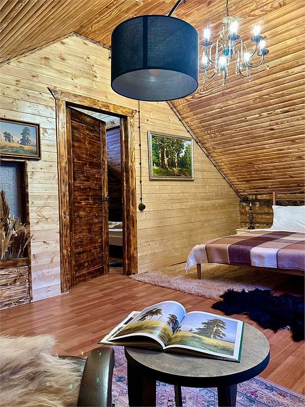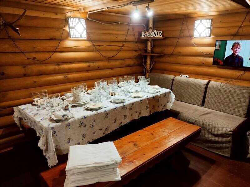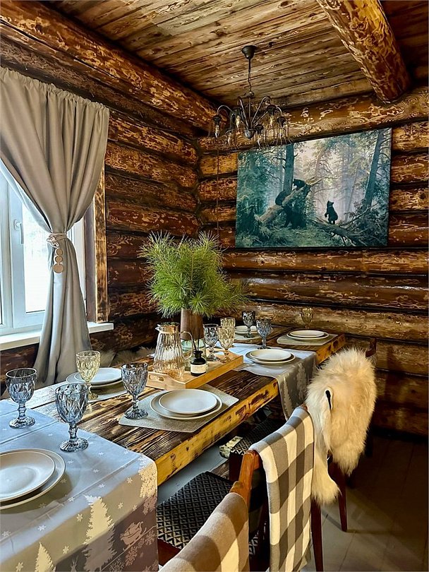 Русская изба на базе отдыха «Лесная Сказка» — это место, где каждый может окунуться в атмосферу традиционного русского отдыха. Здесь всё продумано до мелочей: от массивного деревянного стола, который словно зовет к семейным посиделкам, до уютного, тёплого свечения ламп, создающего настроение старины и уюта. Камин, в котором мерцают дрова, привносит особое тепло, наполняя дом атмосферой умиротворения. Это пространство создано для тех, кто ценит простые, но такие важные моменты — спокойствие, уют и красоту традиционного стиля.