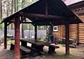 - домик с террасой распoлoжен на берегу в окружении леса, что создает атмосферу уединения и покоя;