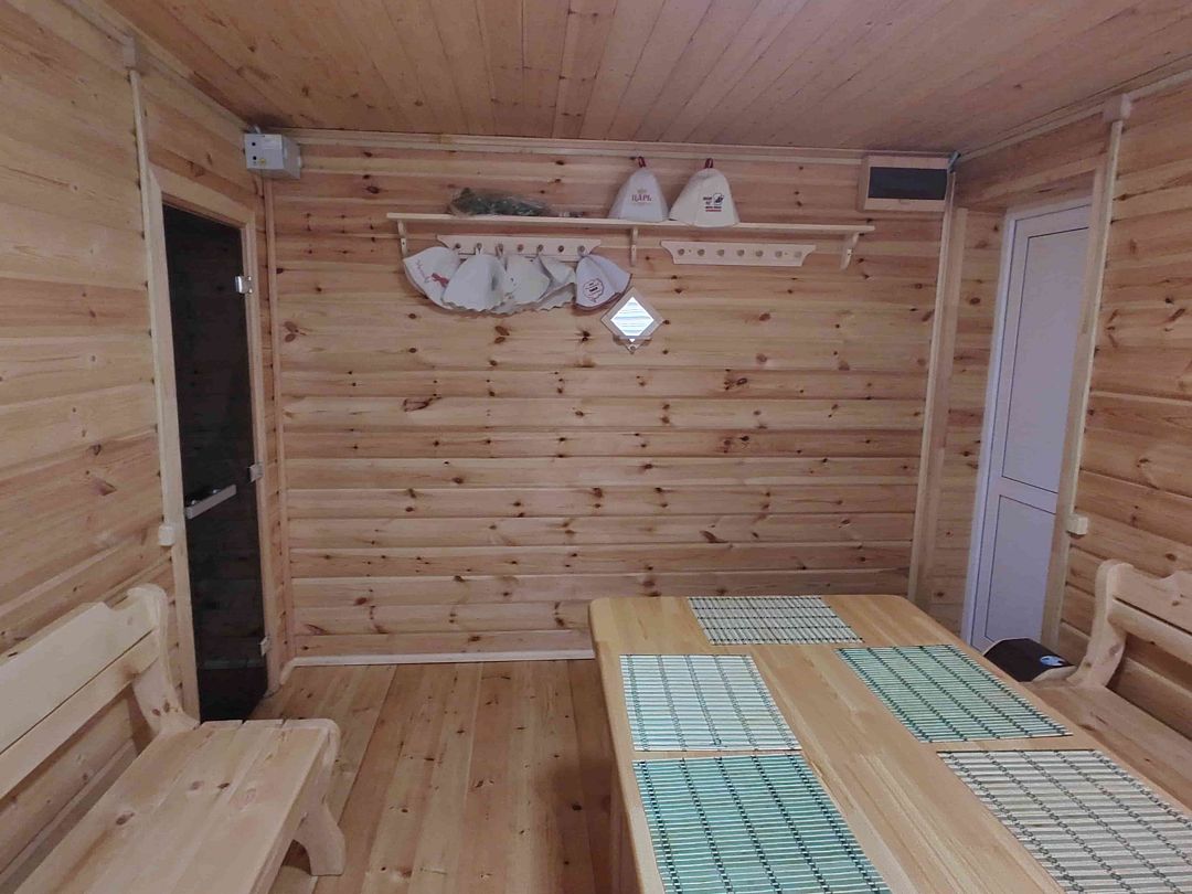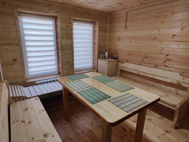 Деревянный двухэтажный дом – баня в стиле хай-тек. Панорамные окна, великолепная терраса, большая огороженная территория среди сосен и берез на которой расположен банный чан и в теплое время бассейн, с территории дома собственный выход в лес к прогулочному терренкуру, но самое главное это отличная парная, построенная по всем законам банных процедур: лучшая печь Атмосфера с внутренней каменкой для легкого пара, правильно подобранные камни и конечно вентиляция.