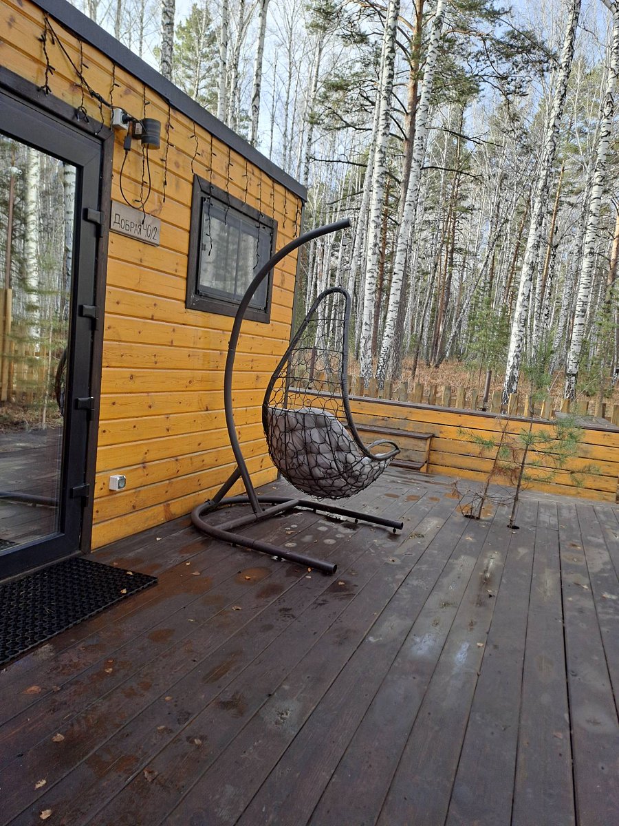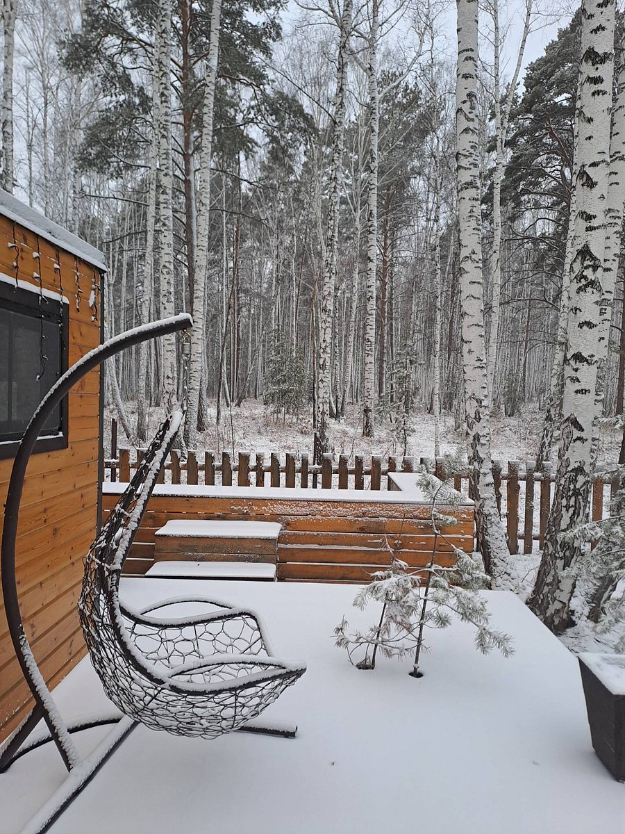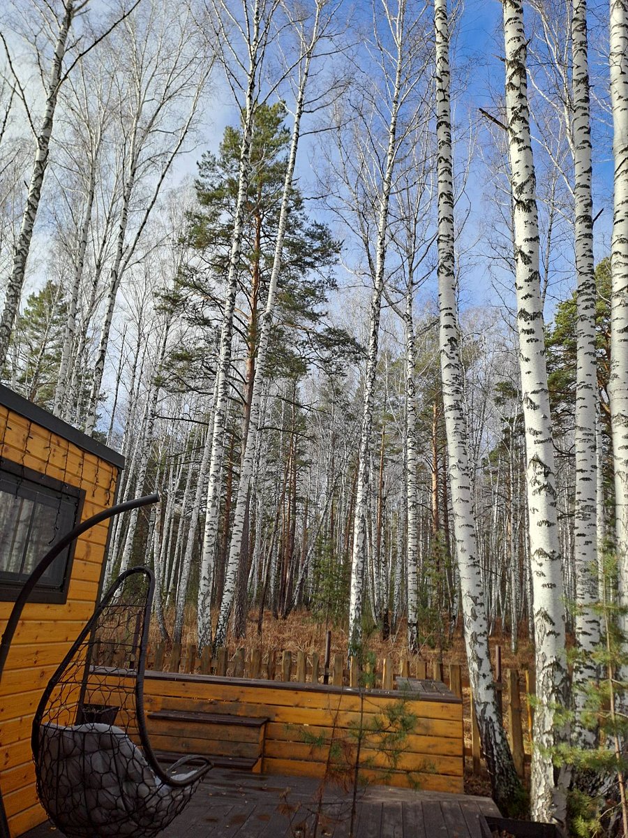Комфортный трехместный глэмпинг расположенный в лесу, с панорамным остеклением и великолепной террасой, с живописной огороженной территорией на которой стоит банный чан среди сосен и берез, имеет собственный выход в лес к прогулочному терренкуру, отлично подойдет семье из трех человек или для отдыха троим взрослым.