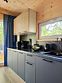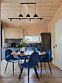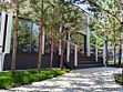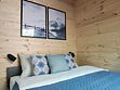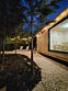 Комфортный дом на 6 человек с панорамными окнами и террасой с видом на сосны.