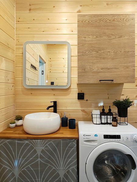 В купель вмонтирована безопасная печь, которая растапливается дровами.