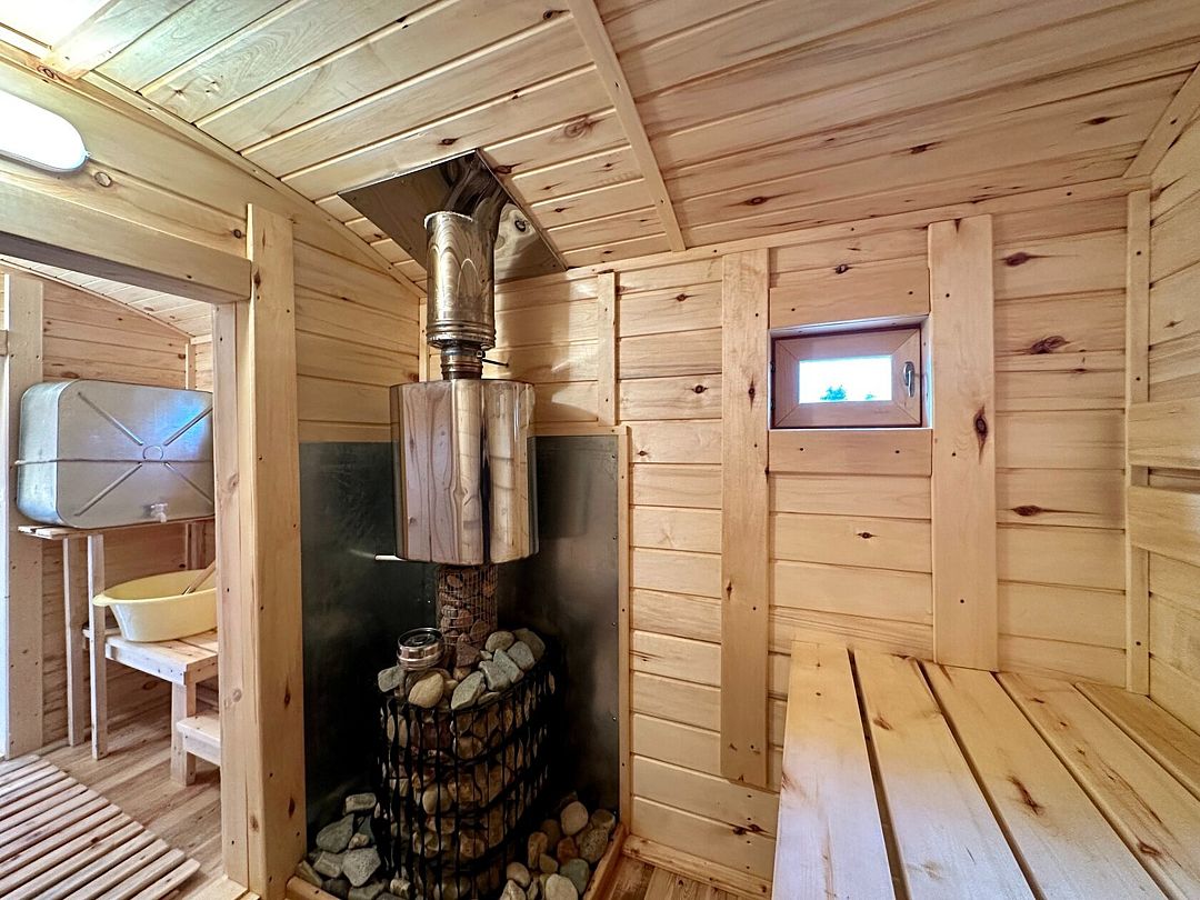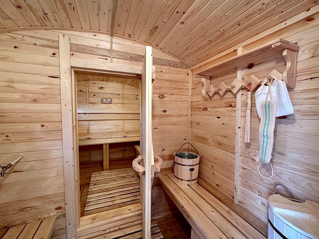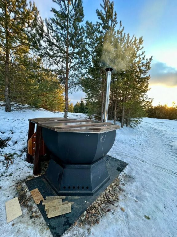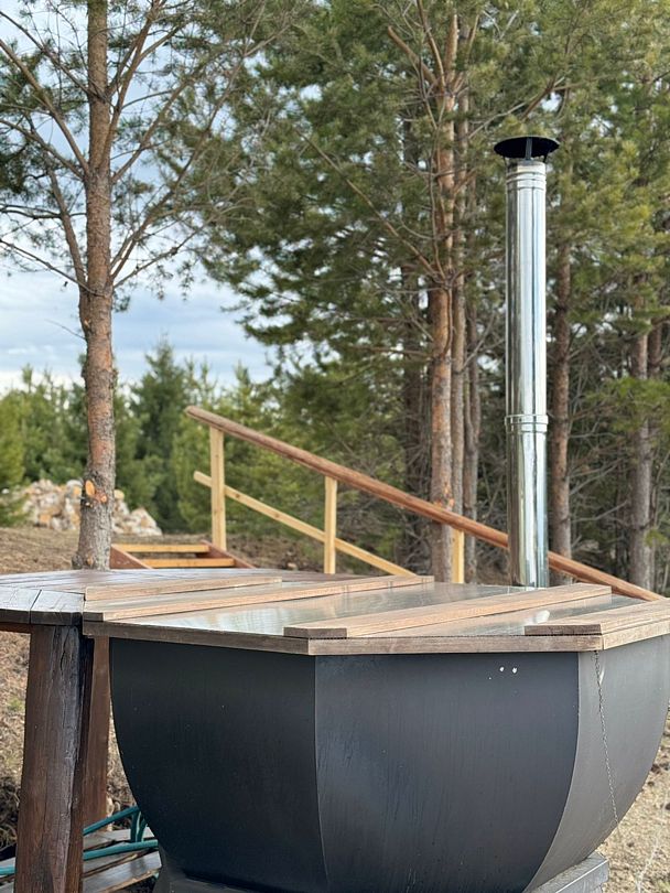 Возле русской бани расположен горячий чан, открывающий завораживающий вид на горы. Чан, доступный для бронирования только в паре с баней, предлагает идеальные условия для полного расслабления и восстановления, погружая в атмосферу гармонии и умиротворения.