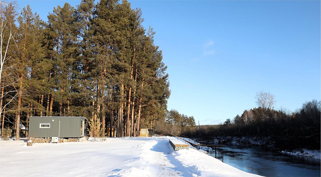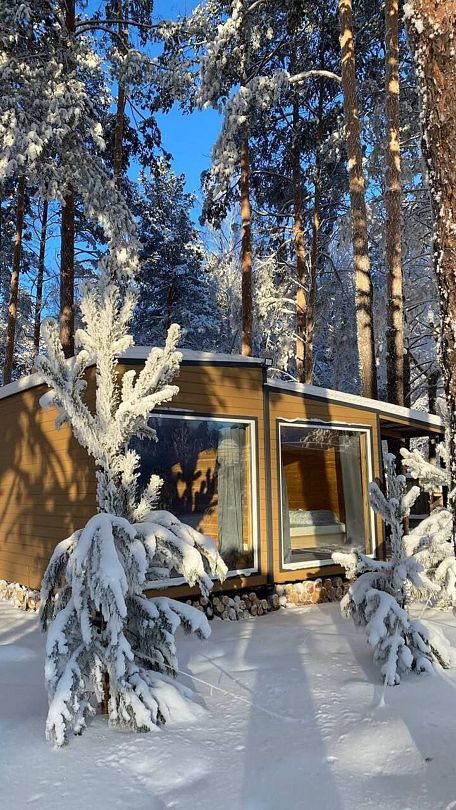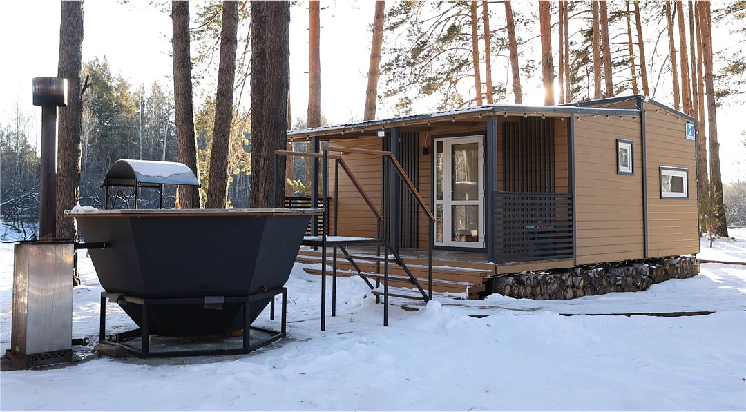На территории располагаются тринадцать уютных домиков со всеми удобствами. В каждом домике есть теплые полы, кондиционеры, полностью оборудованные кухни и современные удобства. Для комфортного отдыха предусмотрены умные колонки, телевизоры и игровые приставки Xbox.