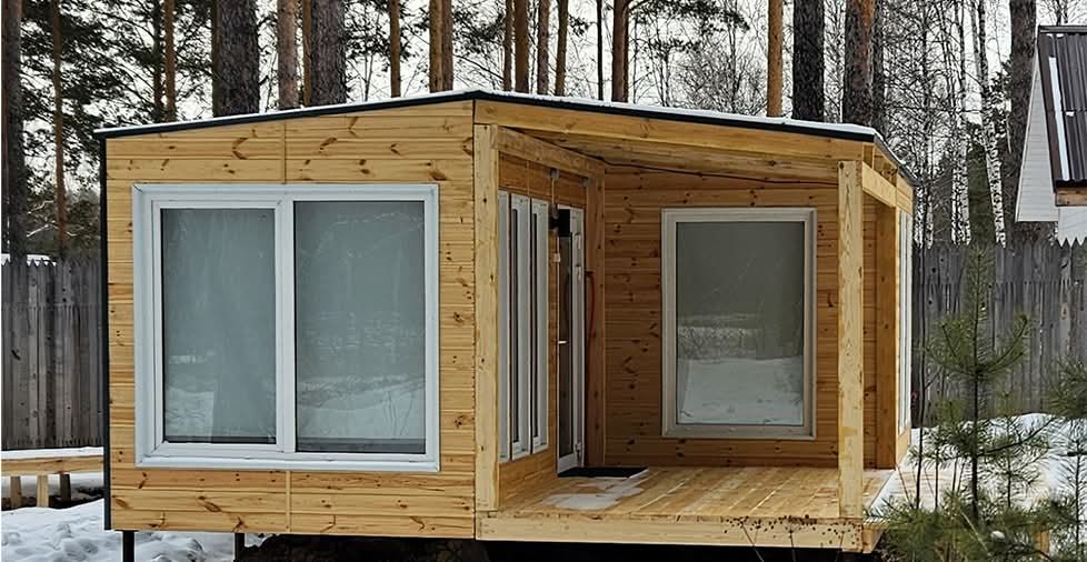 Одномодульный молодёжный домик площадью 15 квадратных метров рассчитан на двух человек. В нём может комфортно устроиться молодая пара.