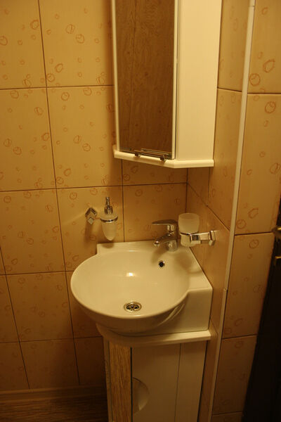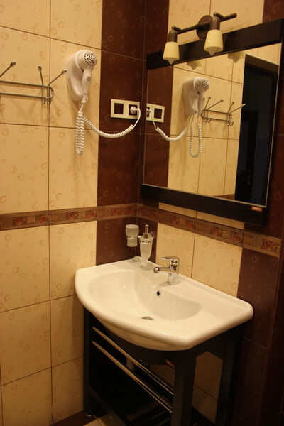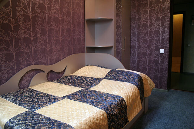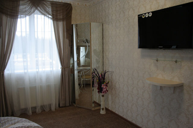 В номере: прихожая, гостиная с кожаной мебелью и столом, двуспальная кровать, шкаф-купе, спутниковое TV, DVD, кухонная зона с холодильником, микроволновой печью, чайником, душевая, санузел, кондиционер.