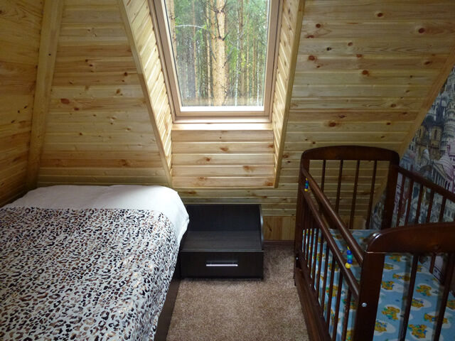 Уютный бревенчатый двухэтажный дом-коттедж с баней и беседкой. Неподалеку, для желающих уединиться, расположена скамейка «для влюбленных». Территория коттеджа огорожена забором, есть охраняемая парковка. Беседка с мангалом.