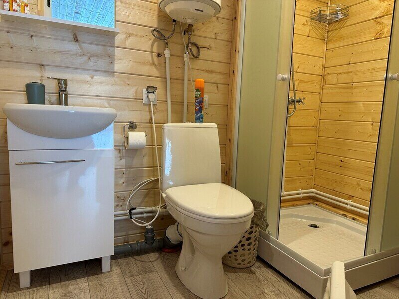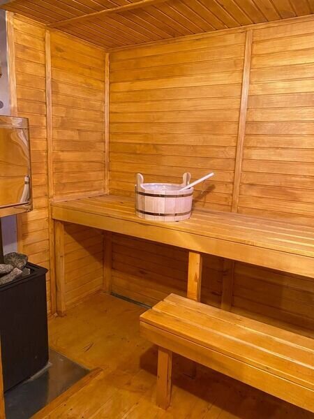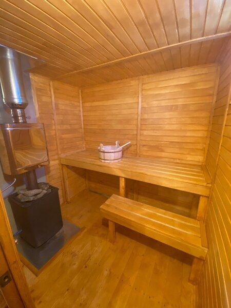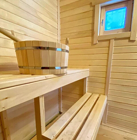 Баня состоит из трех зон: зона для отдыха, парилка, душевая. Вместимость до 4 человек.