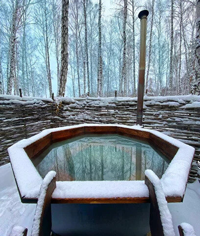 Баня в роще с чаном
