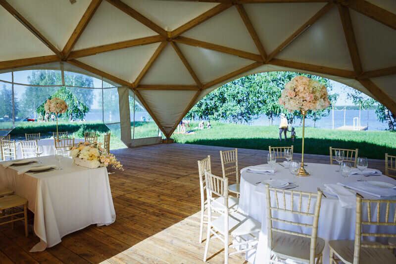 - несколько локаций для свадьбы (шатер, веранда, ресторан);
