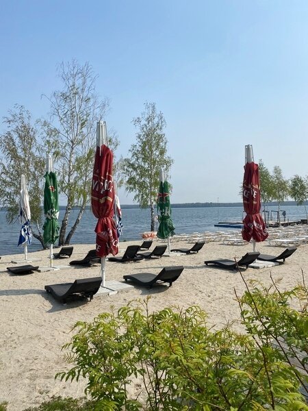 На территории пляжа есть зона с детскими развлечениями, спортивный комплекс, зоны для игры в футбол и волейбол. Можно взять напрокат катамараны, прокатиться на «банане» или водных лыжах. Каждое лето появляется что-то новое. В жаркую погоду можно прогуляться в тени лесного массива. Рядом с пляжем – зона барбекю и беседки, где можно отдохнуть и провести время компанией из 8-12 человек.