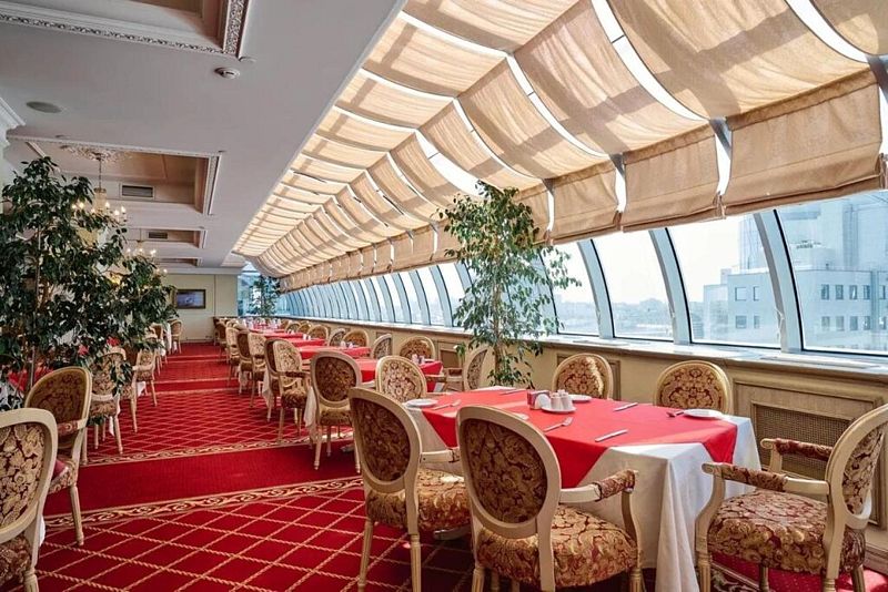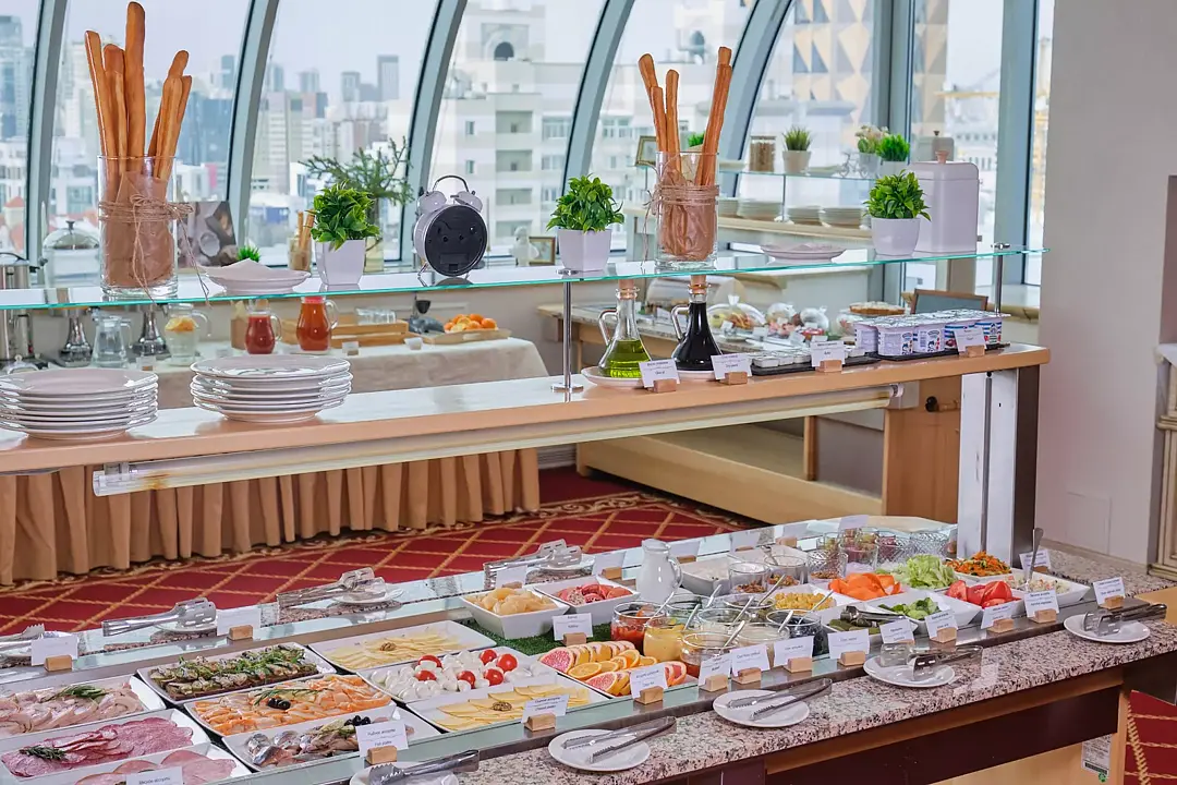 Завтрак в панорамном ресторане на 15-ом этаже: Насладитесь захватывающим видом на город, пробуя разнообразные блюда.