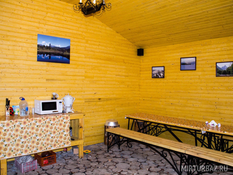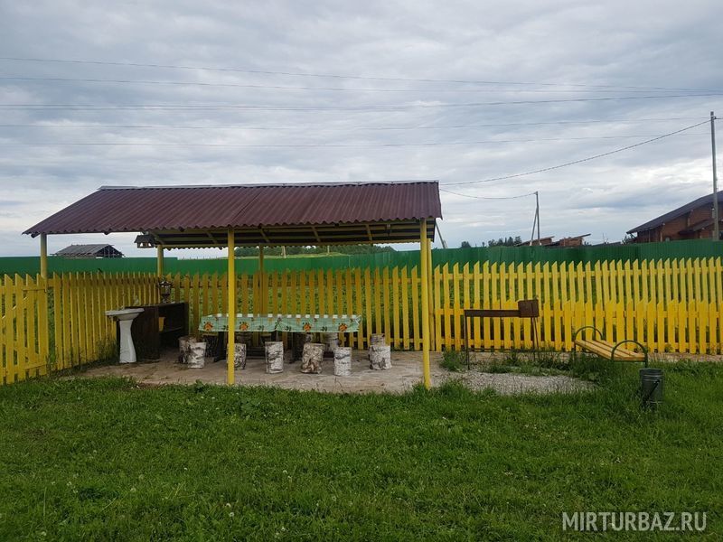 Беседка отапливается дровами и оборудована столами и лавками. В беседке для удобства есть электрочайник, микроволновая печь, разделочные доски с набором ножей, телевизор, спутниковым телевидением, музыкальным центром. Территория беседки огорожена. На прилегающей территории находится навес с мангалом, казан, сетка для жарки барбекю и большое количество шампуров.