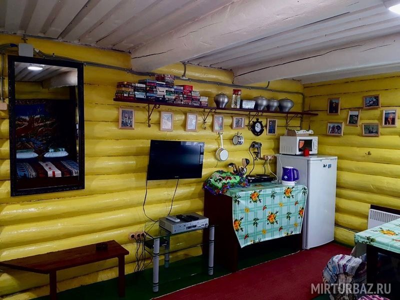 Двухэтажный дом «Дружная компания» оснащен традиционным внутренним убранством. В доме для удобств есть электрочайник, микроволновая печь, холодильник, электроплита, будничная утварь для готовки и приема еды, музыкальный центр, DVD, спутниковое телевидение, душевая кабинка, туалет. Для семейных пар с детьми – дополнительные детские кроватки.