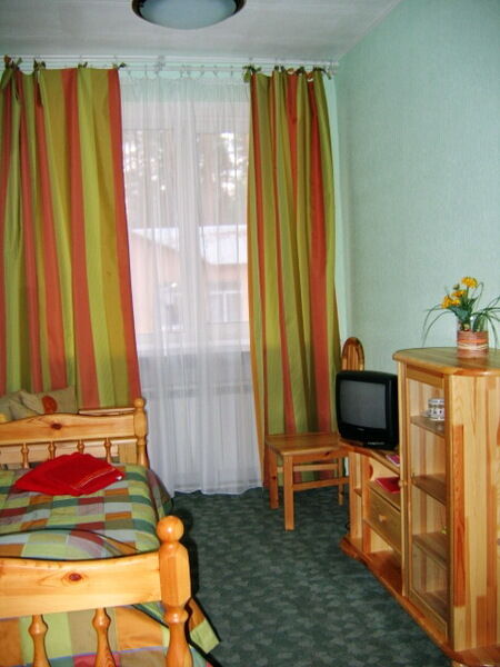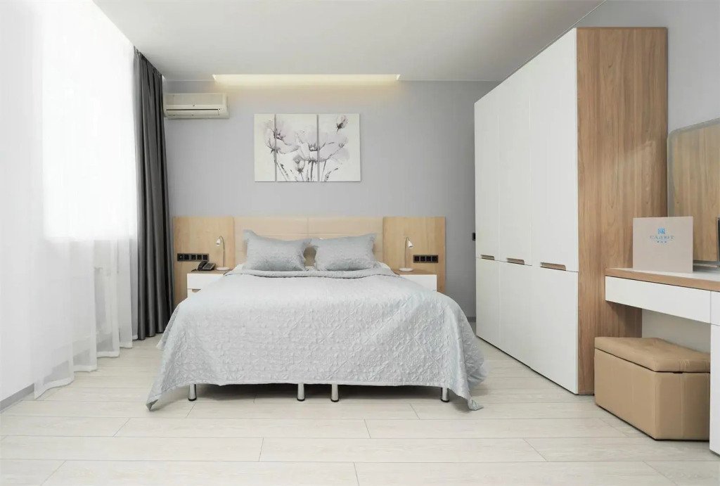 В номере: 2 односпальные кровати, или 1 двухспальная кровать, шкаф для одежды, телевизор, мини-бар, чайные пары.