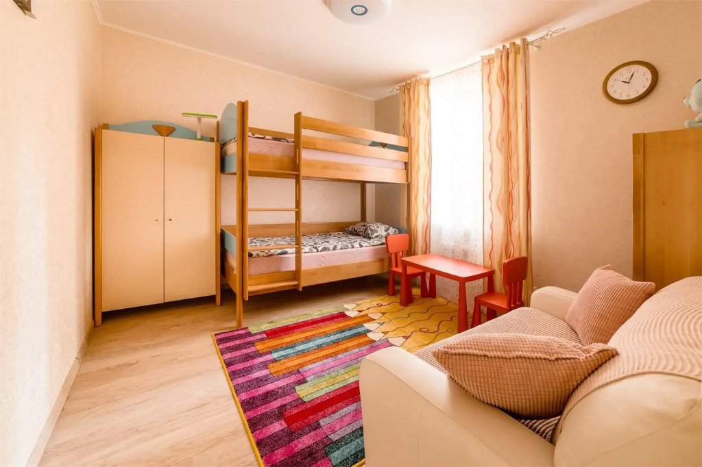 - Гостиная с TV и большим диваном, обеденным столом, спальня, детская комната с 2-х ярусной кроватью, диваном (доп.место)