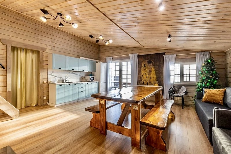 Дом из натурального дерева, расположен на участке 10 соток, общей площадью 128 м2, в нем есть всё необходимое для комфортного пребывания гостей.