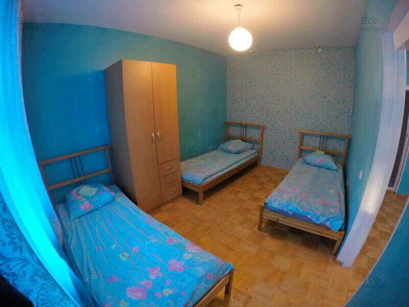 В номере: кровать двуспальная - 1 шт, кровать полутораспальная - 2 шт., шкаф - 2 шт, телевизор, две тумбочки, два светильника.