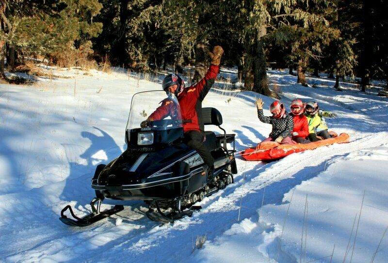 Катание на снегоходах с прицепными устройствами (бублики, банан). Это отличное развлечение, которое может заменить традиционные водные атракционы.