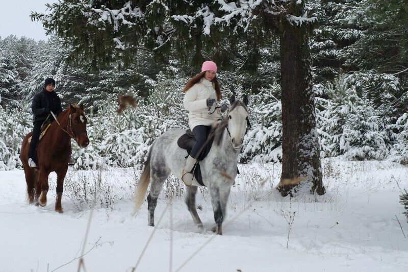 Для любителей спокойных прогулок предлагаем конные маршруты по лесопарку. Стоимость — 1200 руб./час.