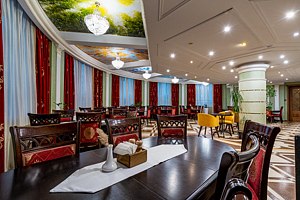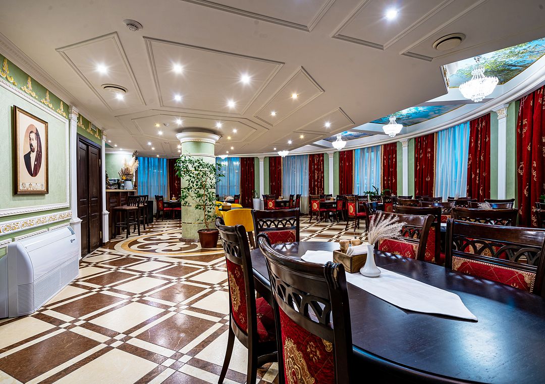 Ресторан работает с 12:00 до 00:00 и имеет два банкетных зала «Европейский» и «Русский», каждый вместимостью до 64 человек.