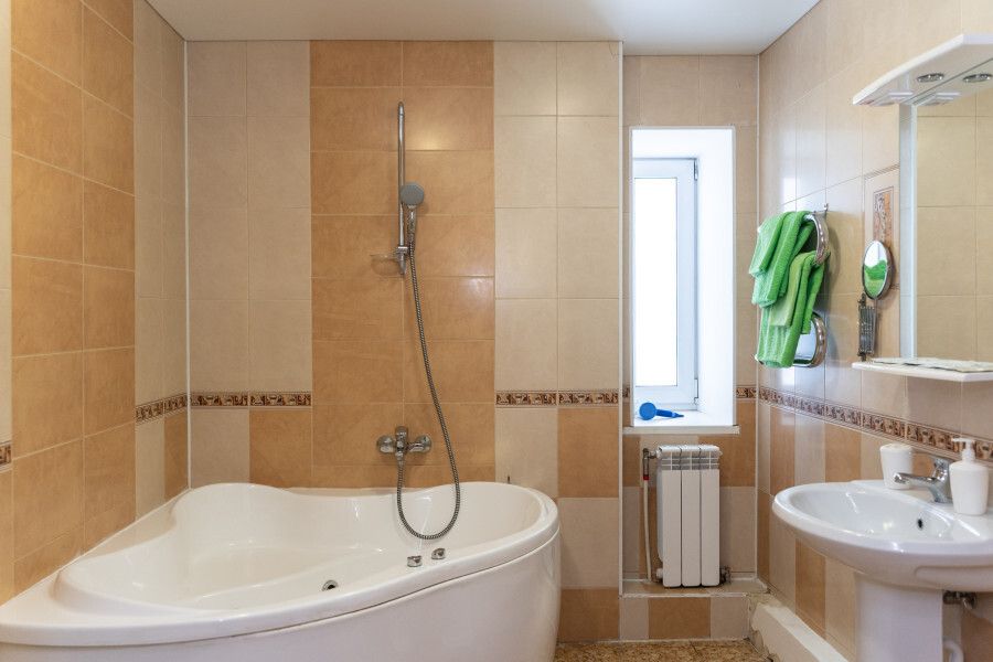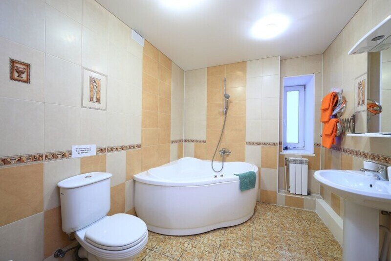 Люкс — двухкомнатный номер с уютной спальней и просторной гостиной. Санузел оснащен джакузи.