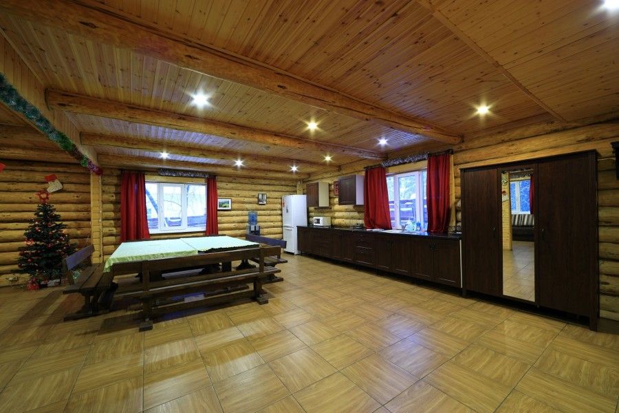 Зал в коттедже подходит для камерных мероприятий различного формата. В зале можно провести торжественные события с банкетной рассадкой до 20 человек или семинары. Оборудование включает ТВ-плазму, колонки, микрофон и Wi-Fi.