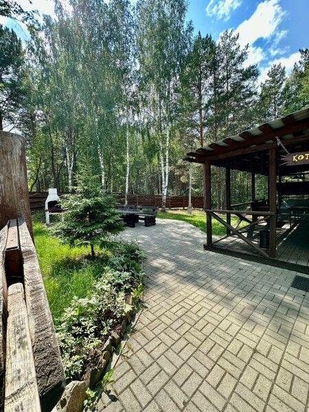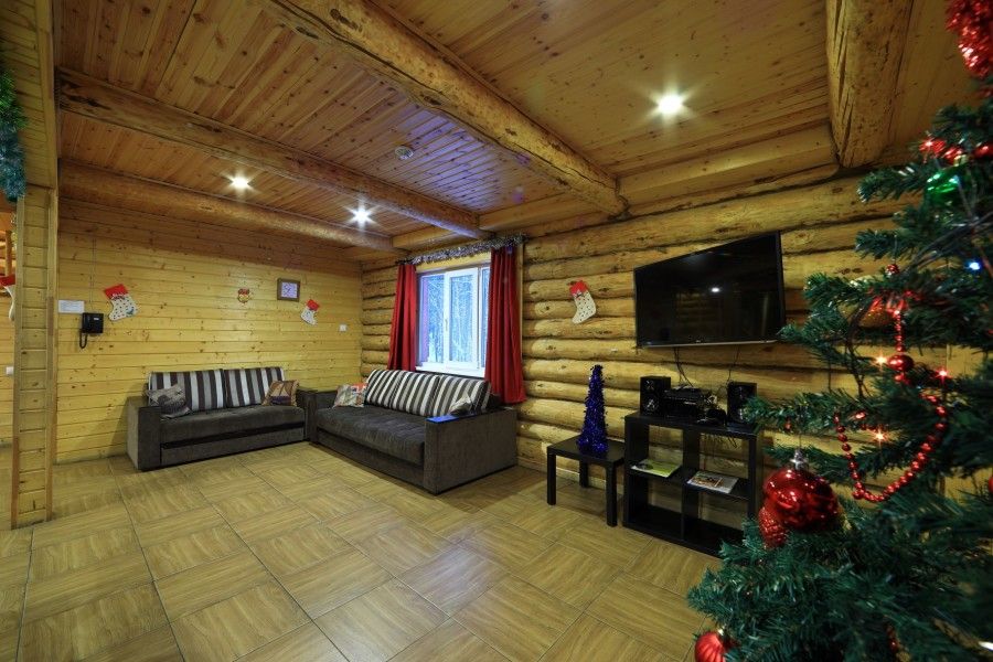 Уютный деревянный коттедж в современном деревенском стиле с верандой и барбекю зоной с огороженной территорией в сосновом лесу. На первом этаже — просторная гостиная с ТВ и караоке зоной, оборудованная кухня с всей необходимой техникой и посудой, санузел.