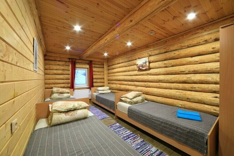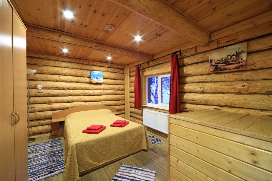 На втором этаже — 4 спальни, ванная комната, санузел. Размещение 12 спальных мест. Возможно 3 дополнительных места. Одна двуспальная кровать, 10 односпальных кроватей.