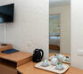 В апартаментах с комфортом разместится семья из четырех человек. В каждом номере данной категории установлен кухонный гарнитур с варочной панелью.