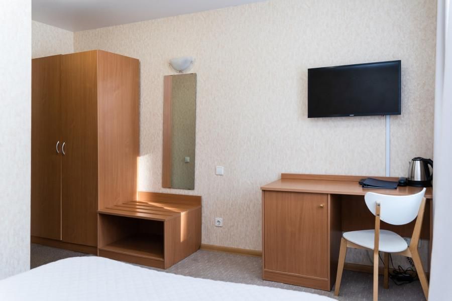 Номер Стандарт с 1 двуспальной кроватью — однокомнатный номер для одноместного или двухместного размещения. Эти номера являются практичным выбором как для деловой поездки, так и для отпуска.