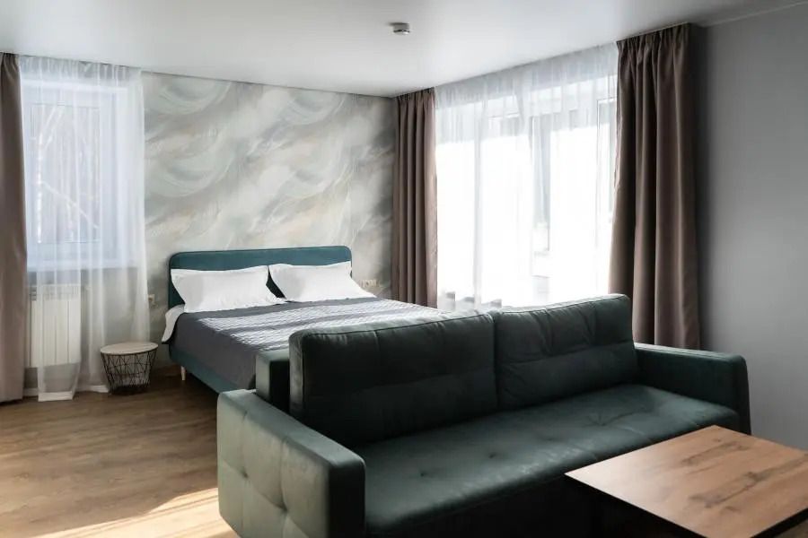 Насладитесь приятным отдыхом всей семьей в номерах категории «Апартаменты». В отдельной зоне большая 2-спальная кровать. Еще два дополнительных спальных места вы получаете при разложенном мягком диване.