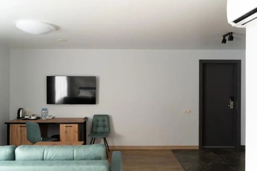 Джуниор сюит — просторный номер с видом на бассейн. Отлично подойдет для двухместного размещения. Площадь номера позволяет также легко разместить троих гостей — дополнительное спальное место на раскладном диване.