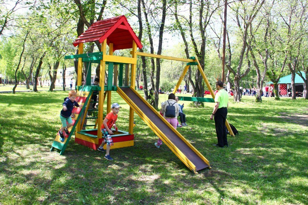 В загородном комплексе «Солнечный остров» всегда есть чем заняться с детьми — на территории расположено несколько детских площадок с горками и игровыми комплексами.