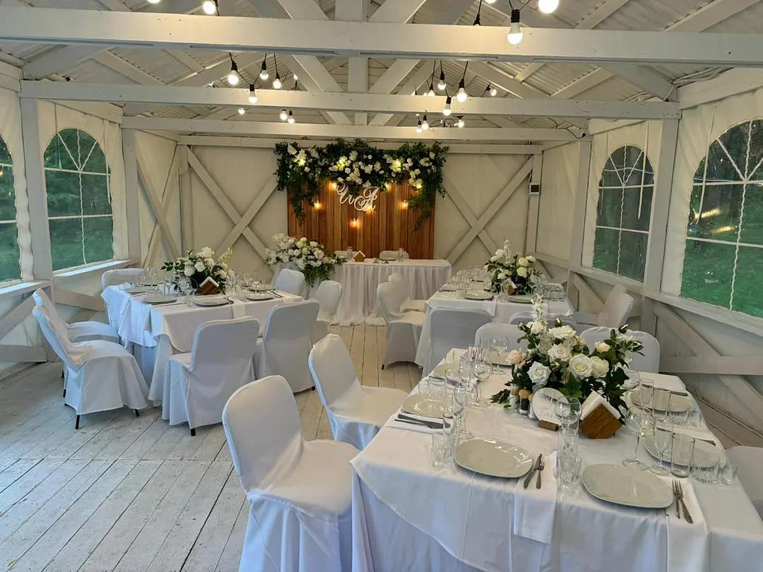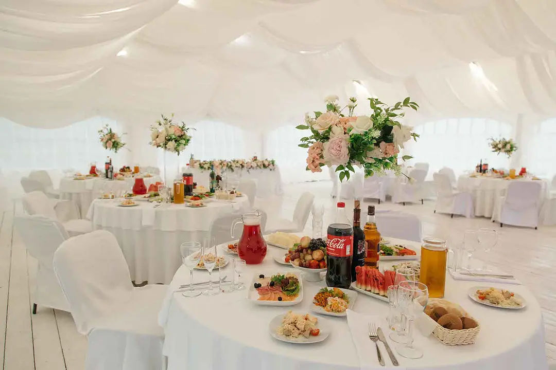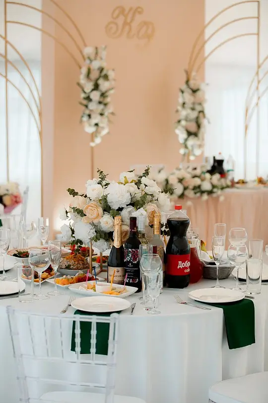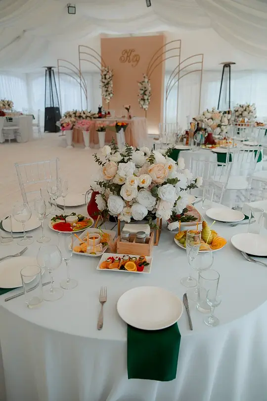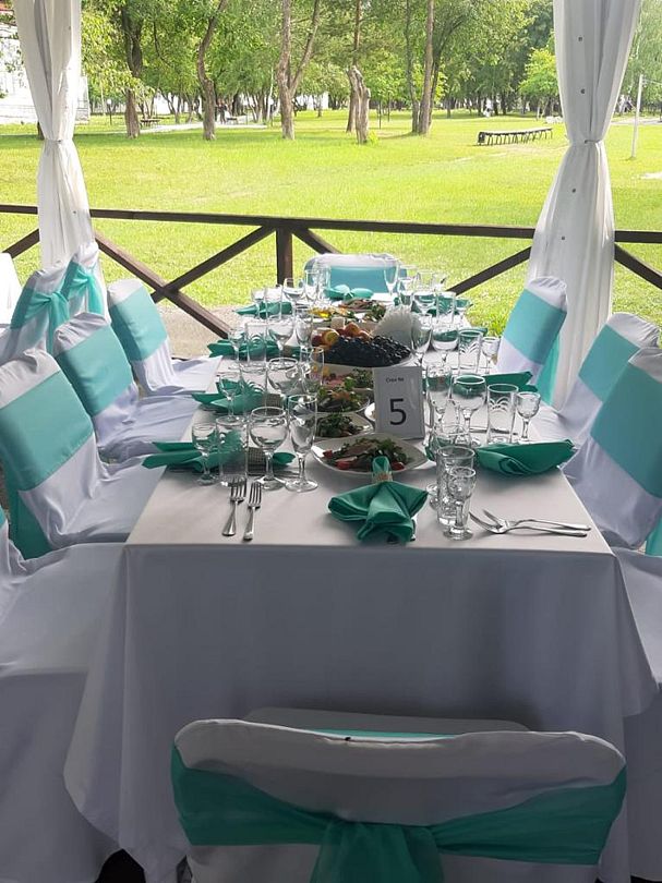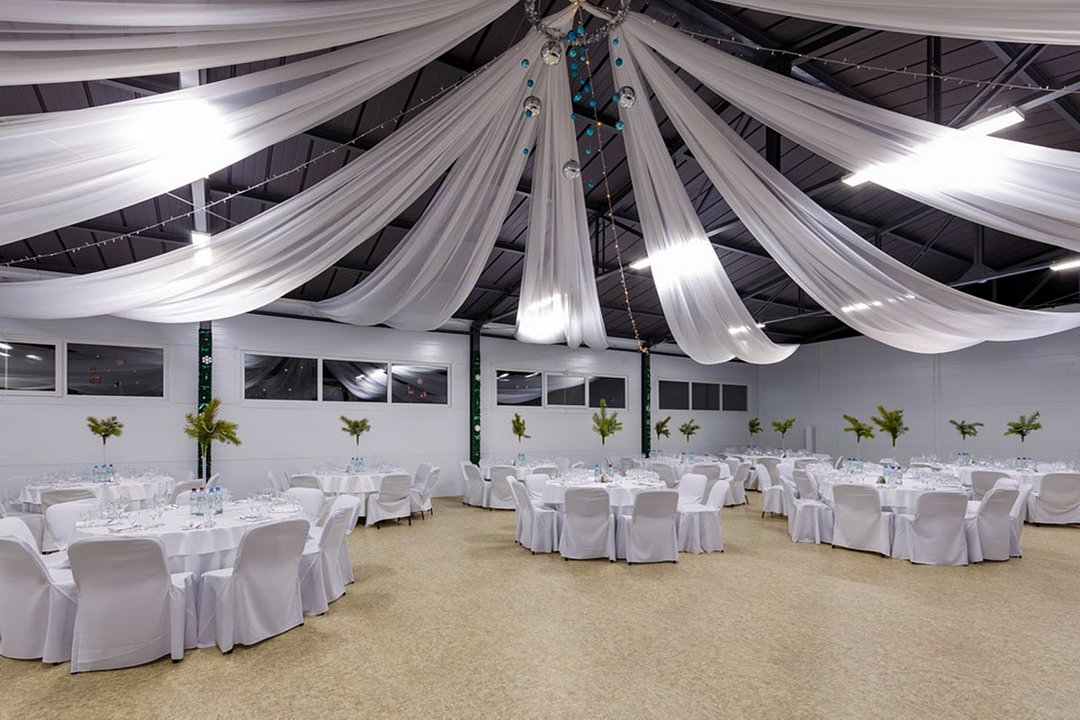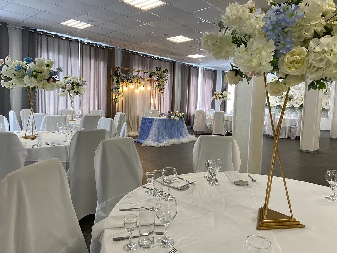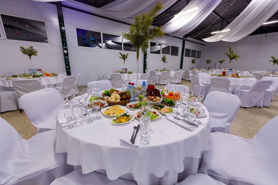 Банкетный зал в загородном комплексе «Солнечный остров» — просторный зал, выполненный в нейтральных светлых тонах. Вмещает до 120 человек и рассчитан на свободную посадку гостей и проведение танцев с программой.