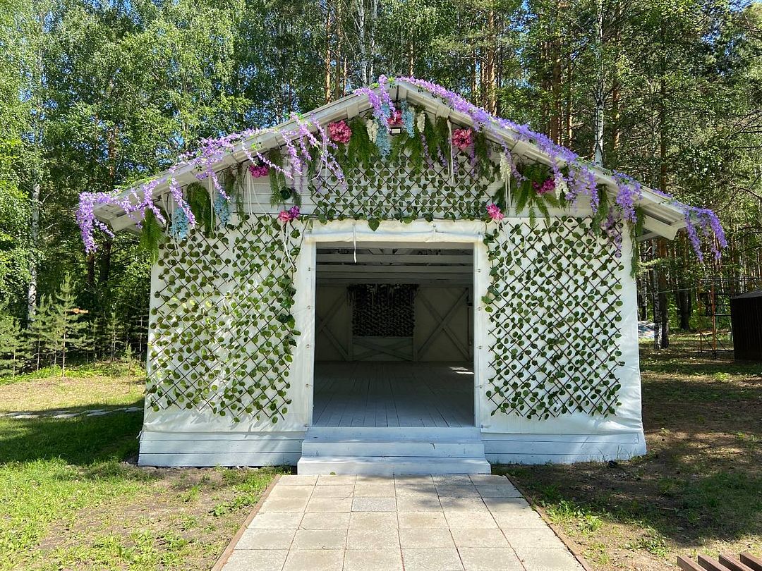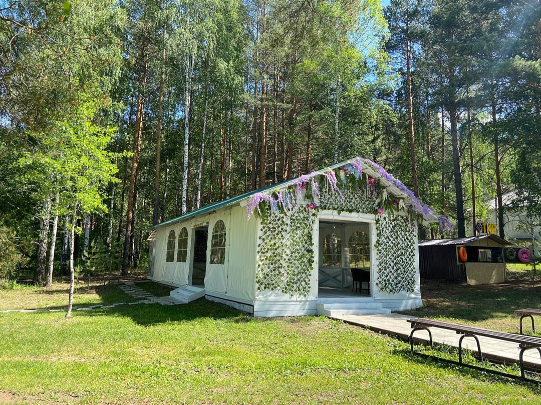 Уютная веранда расположена в зоне пляжа с живописным видом на реку. Рядом находятся активные летние развлечения: волейбольная площадка, пляж с шезлонгами, станция проката сапборов и тир. Веранда вмещает до 40 человек и идеально подходит для проведения мероприятий. Рядом с верандой расположена поляна для тимбилдинга или выездной регистрации с приветственным фуршетом.
