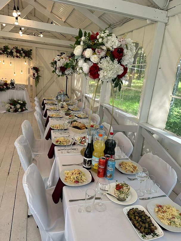 Загородный комплекс предлагает своим гостям вкусный завтрак. Работает несколько точек питания – ресторан, бистро. На свежем воздухе оборудованы беседки с мангальными зонами.